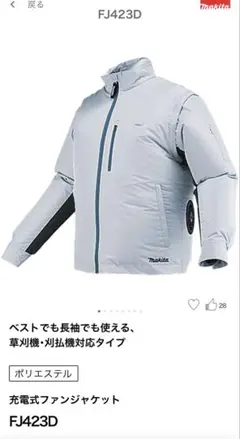 ベストにもなる2WAYの長袖ファンジャケットで、袖の着脱が可能なんですよ。天候や作業内容に合わせてベスト/長袖を使い分けられるのが便利で、ネットでも「一着で二度おいしい」と話題のモデルです。草刈機のハーネスとも干渉しにくい設計。中古では袖の着脱部のファスナー、生地、ファンユニットの状態を確認してください。
