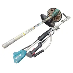 MUR190UDの分割棹タイプで、U字ハンドル仕様です。棹分割でコンパクトになるので車載スペースが限られる方にうれしい構成ですね。楽らくモード+3スピード切替は上位機と同等なので、平坦地の草刈りには十分な実力があります。 中古では分割部の結合ガタ、シャフトの曲がり、ガードの状態、刃物取付部の消耗を見たいです。バッテリー資産がない場合は、セット品との価格差を確認してみてください。